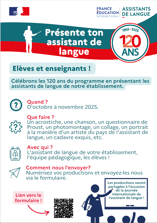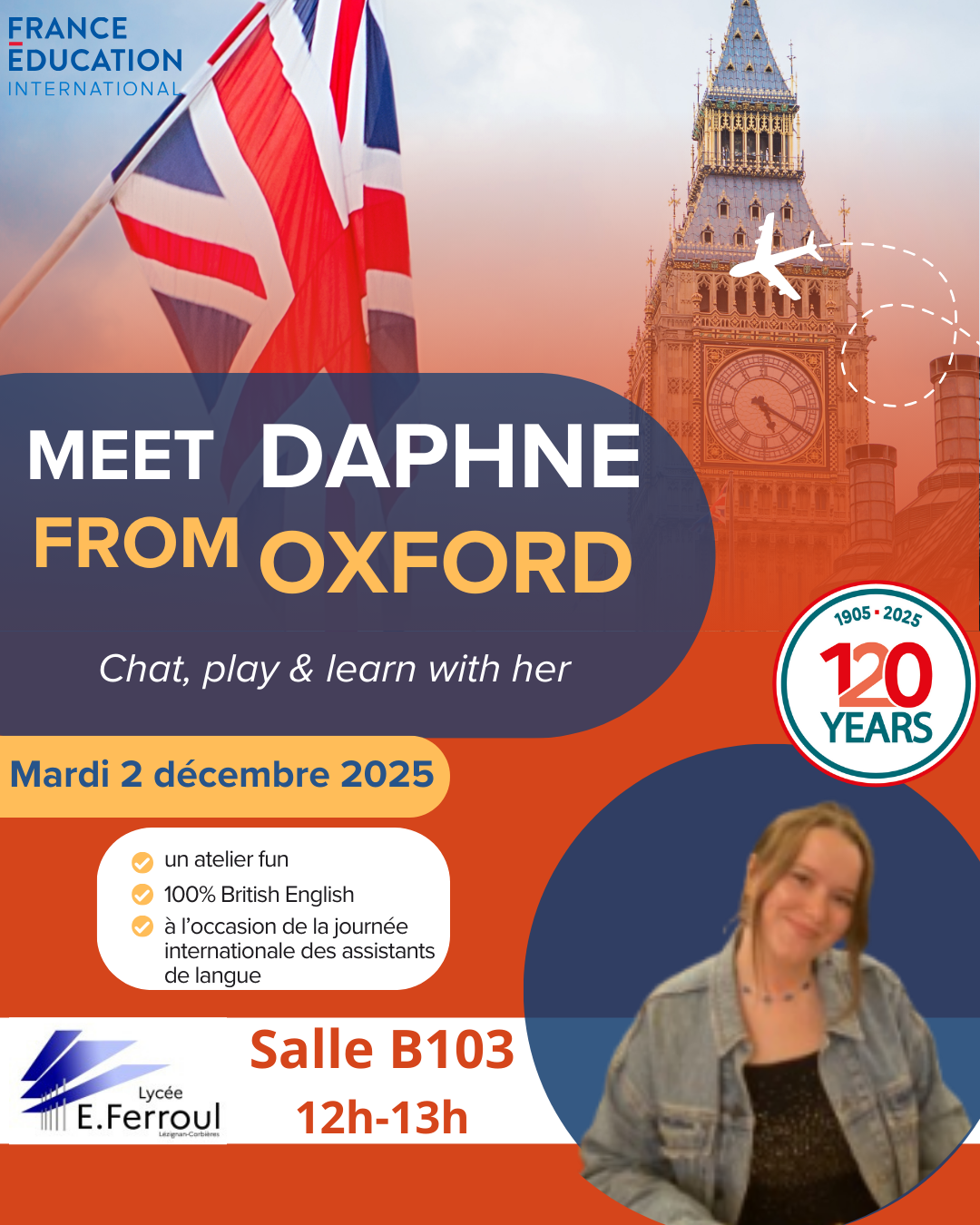 Venez célébrer les 120 ans du programme d'échange d'assistants de langue et rencontrer Daphne, notre assistante d'anglais.