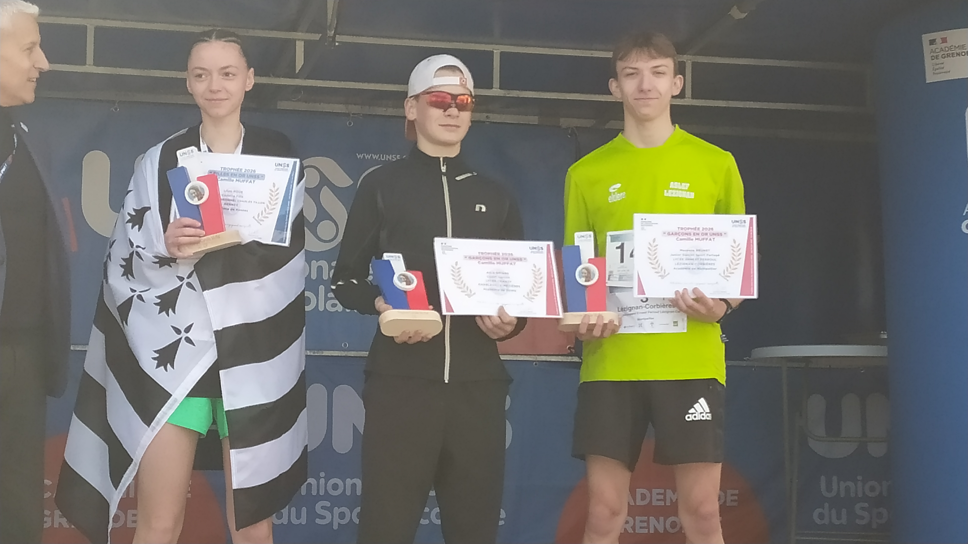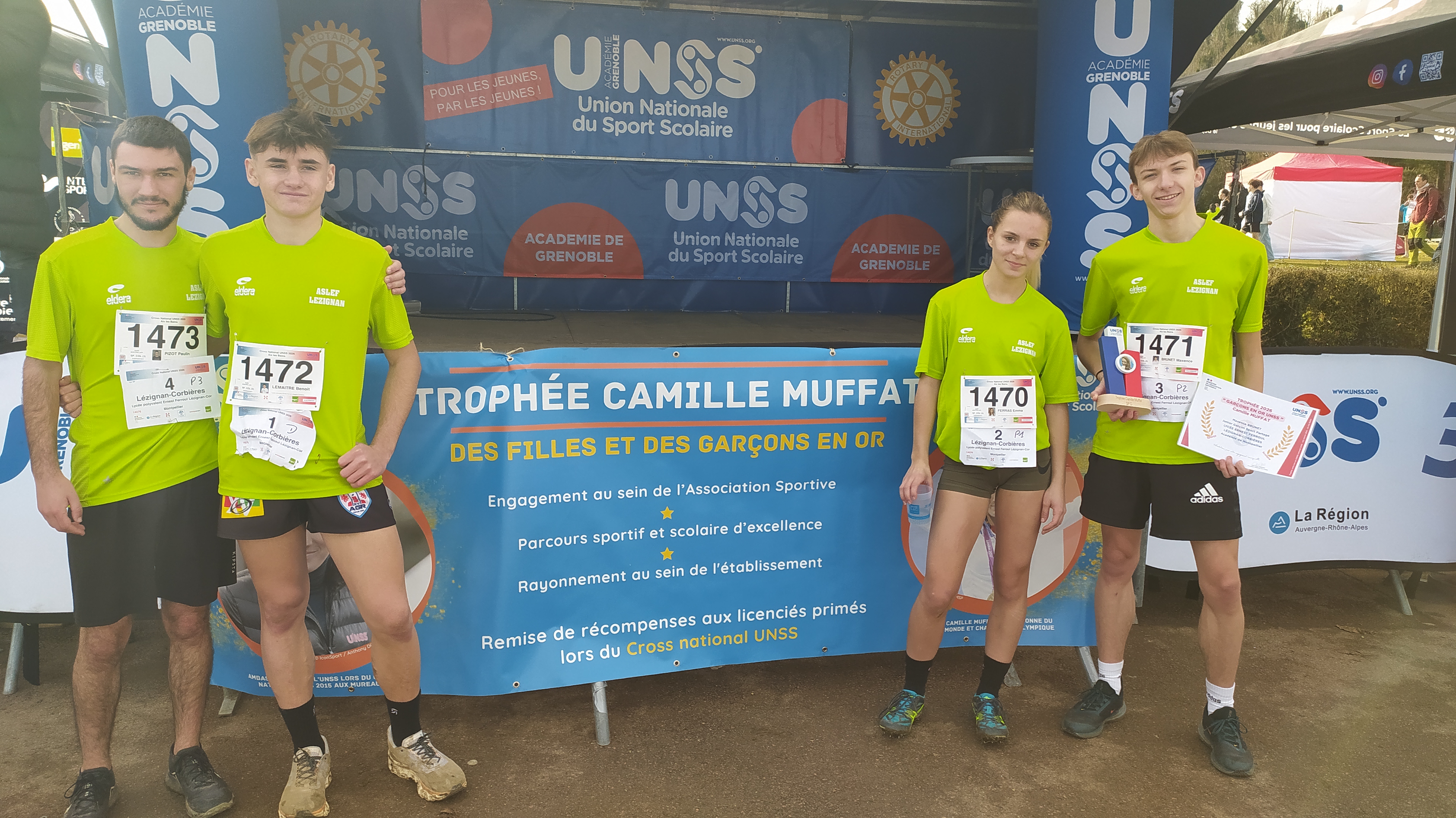 6emes /22 au championnat de France UNSS de cross country en sport partagé et le prix Camille Muffat pour Maxence, le 3eme pour le lycée!